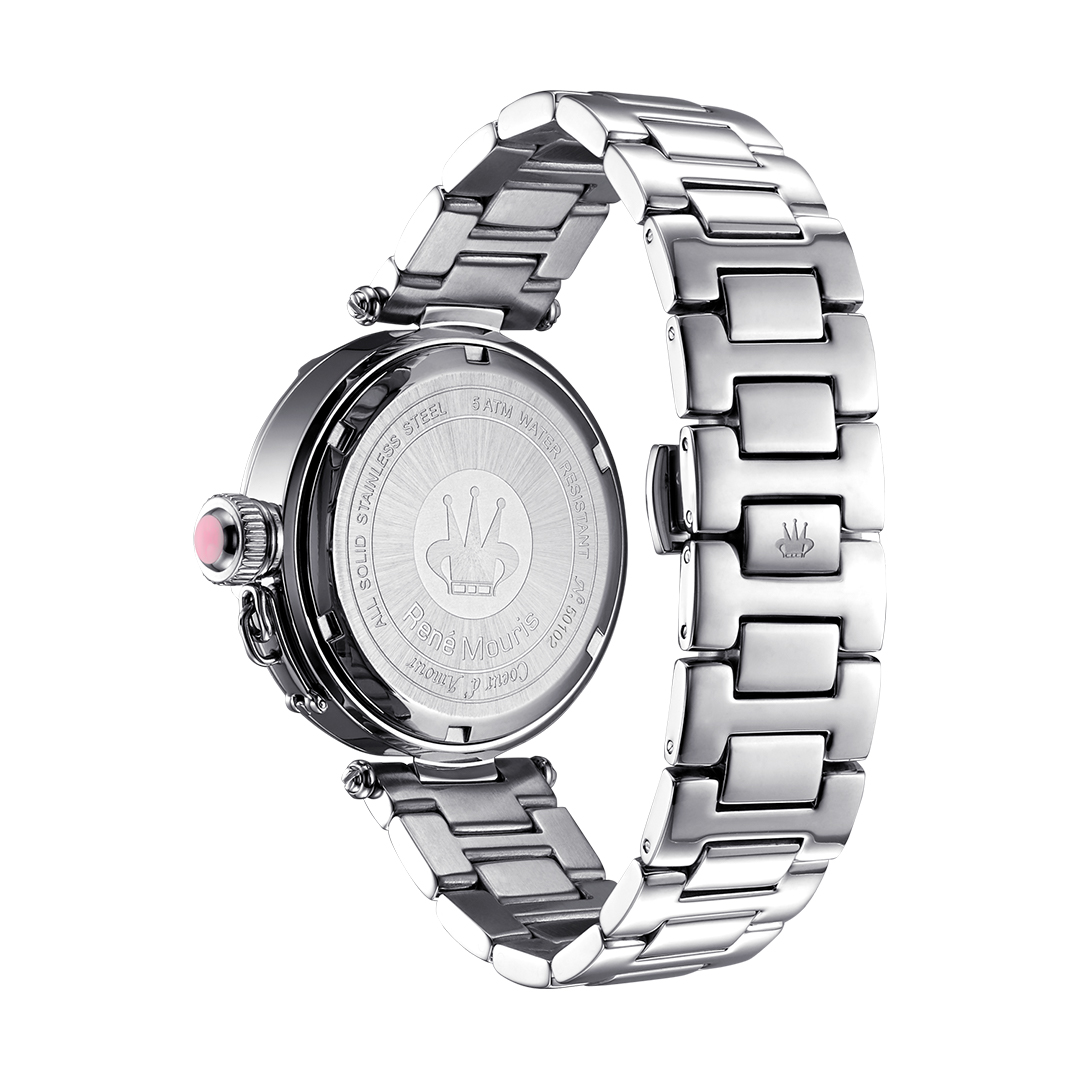 Coeur d’Amour de René Mouris se inspira en el amor y la pasión. Este elegante y encantador reloj luce una esfera de nácar rosa, blanco o negro decorada con un motivo de corazones. En algunos modelos, se pueden encontrar cristales de primera calidad que bordean el corazón y también rodean el bisel.