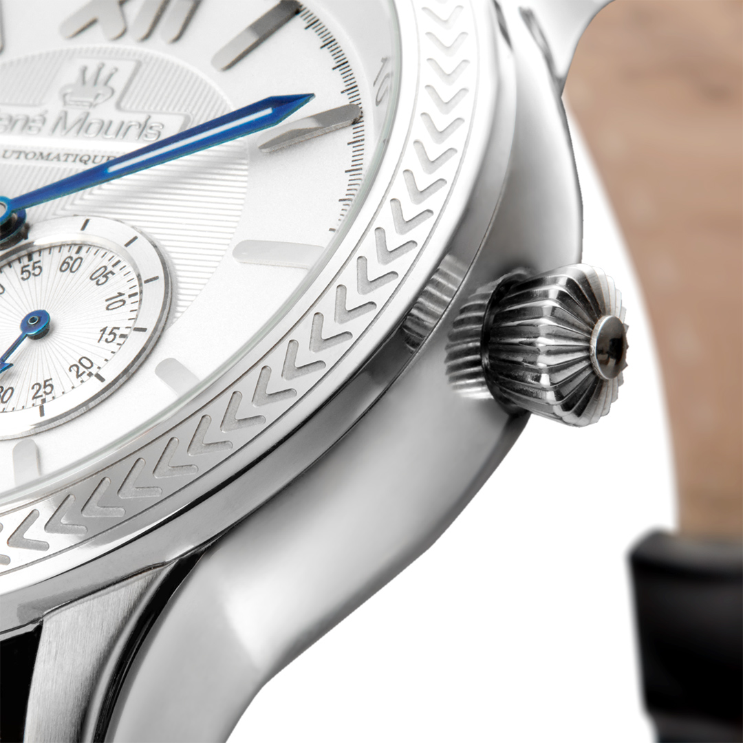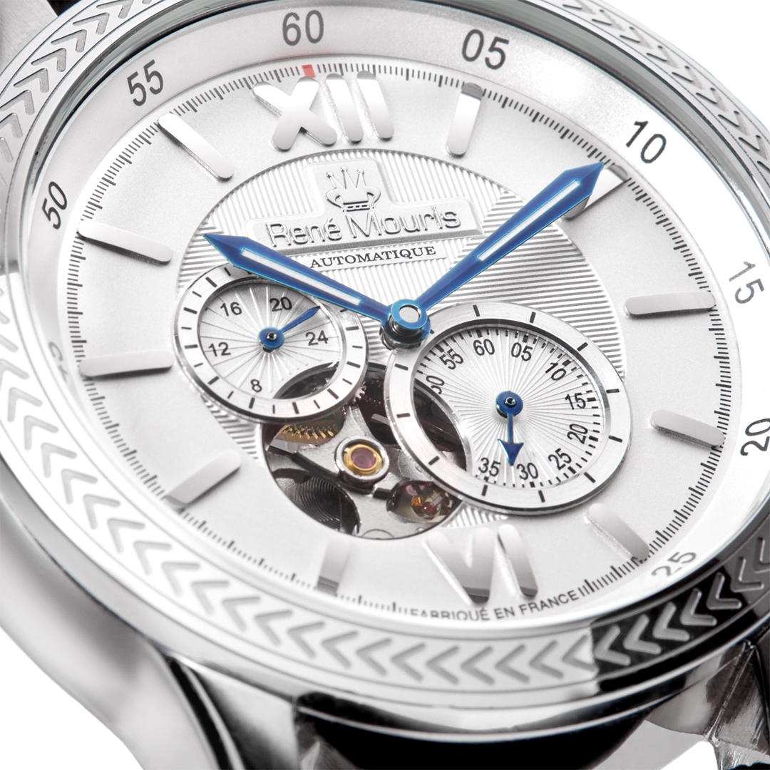 La Corona Automatique, nommée d’après la constellation de la Couronne Boréale, allie à la perfection montre de sport et montre habillée. Reflet de la passion de la marque René Mouris pour l’horlogerie, la Corona dévoile avec brio le fonctionnement interne du garde-temps. Son boîtier parfaitement arrondi et son bracelet en cuir véritable lui confèrent un style classique, tandis que son cadran semi-squeletté multicouche lui confère une touche moderne et élégante.