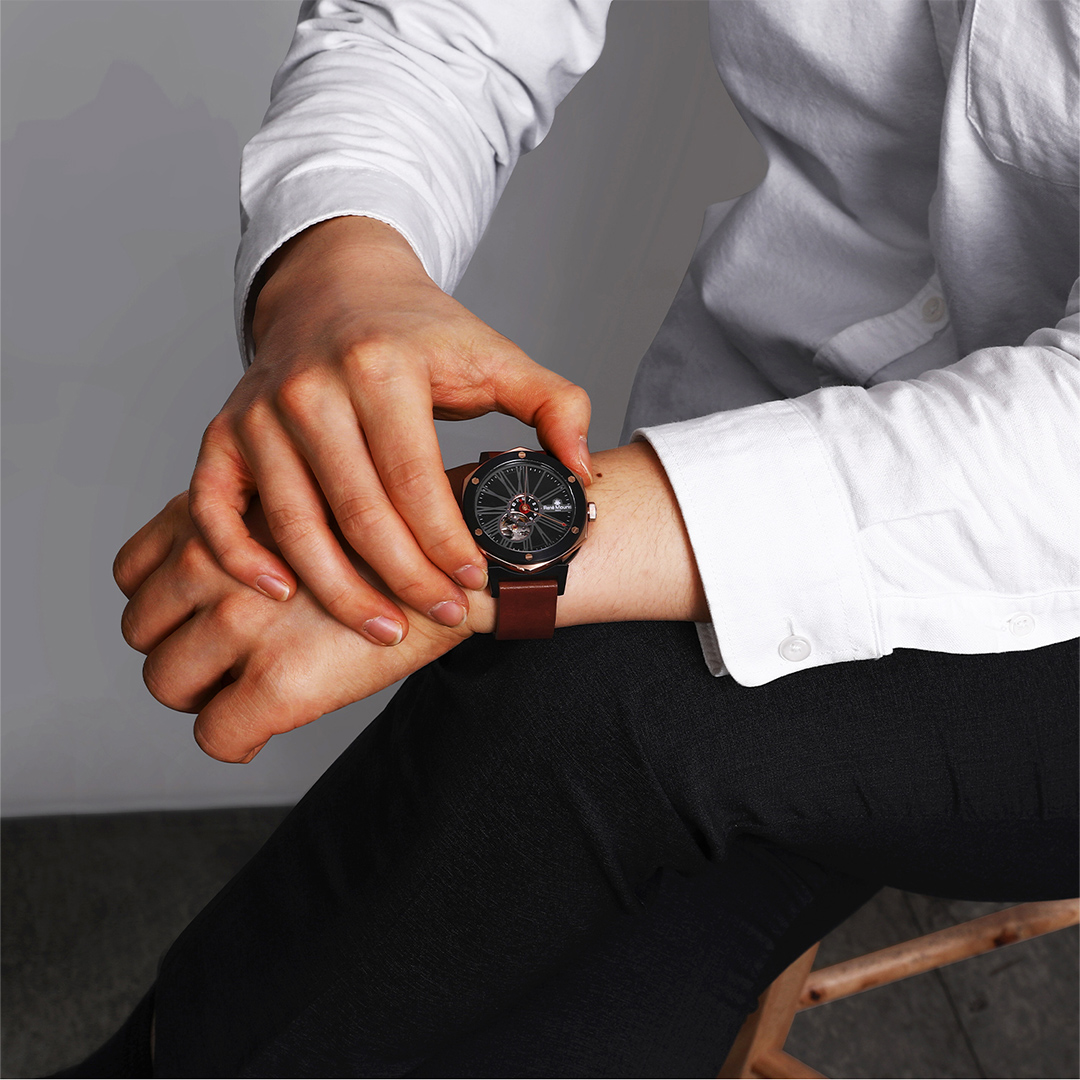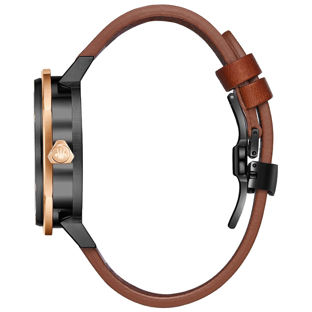 Montrez que le marron est une couleur virile avec un cadran qui allie magnificence tout en rehaussant une touche d’or rose !